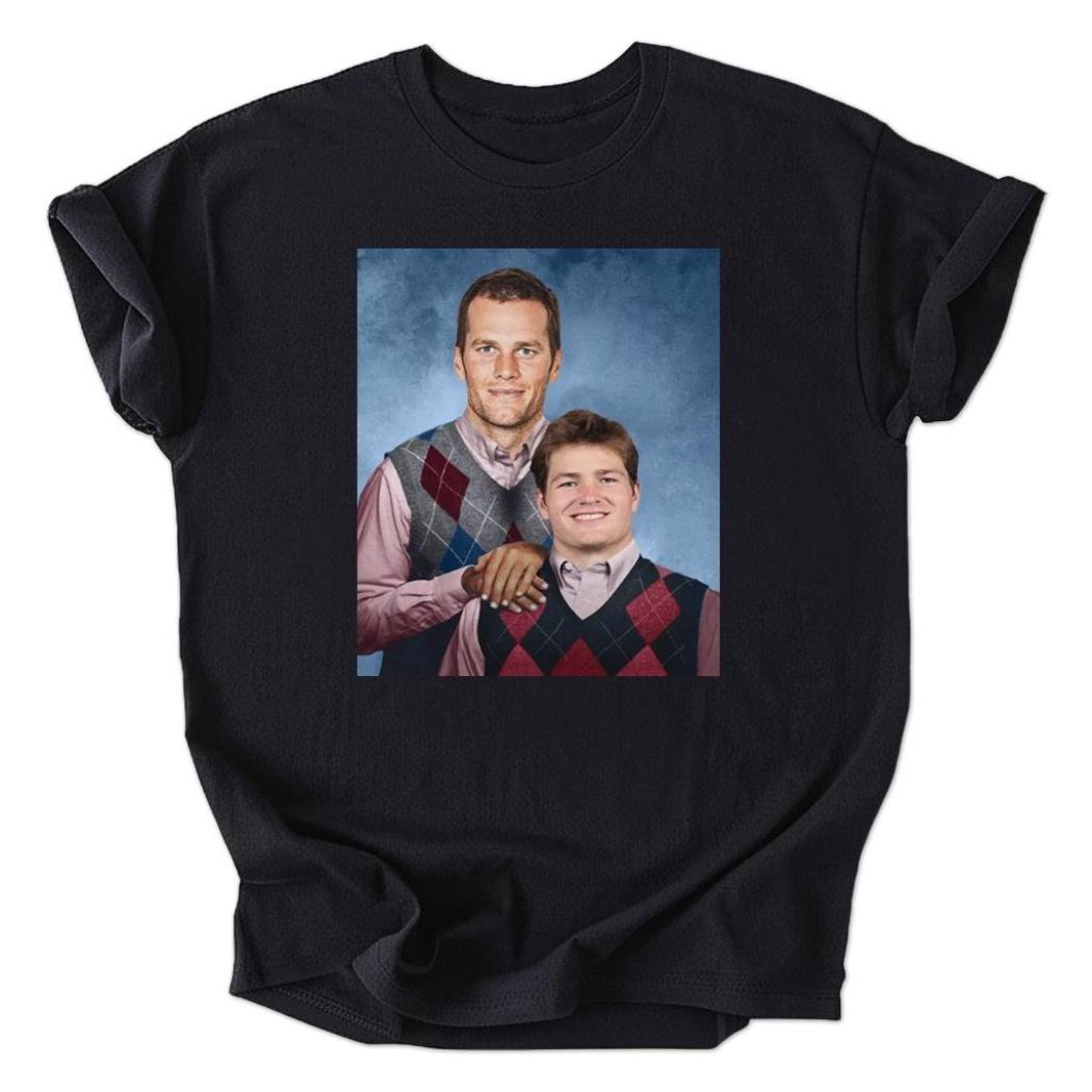 Inspired by the iconic comedy “Step Brothers,” this T-shirt humorously reimagines New England football legends Tom Brady and Drake Maye as the ultimate stepbrother duo. It’s a lighthearted nod to the team’s rich history and promising future, capturing the essence of camaraderie and competition.