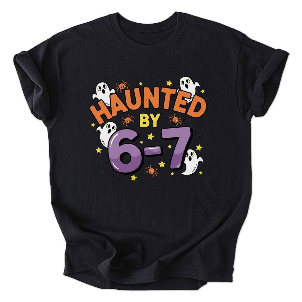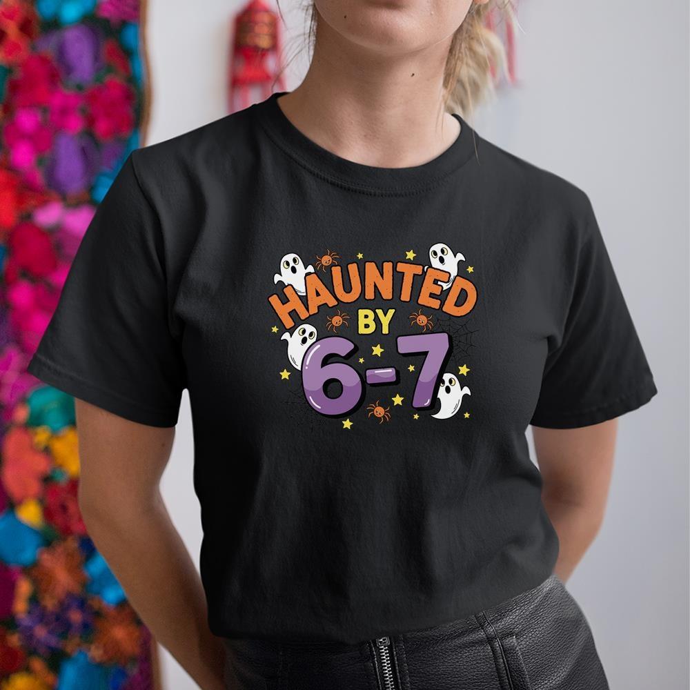 Don’t miss out on this unique blend of humor and spookiness—add the ‘Haunted by 6-7’ shirt to your collection today.