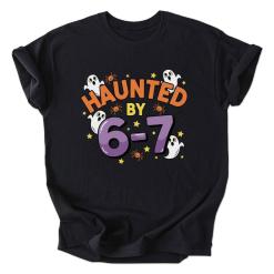 Embrace the viral ‘Haunted by 6-7’ meme with this spooky Halloween shirt, blending humor and eerie vibes for a standout seasonal look.