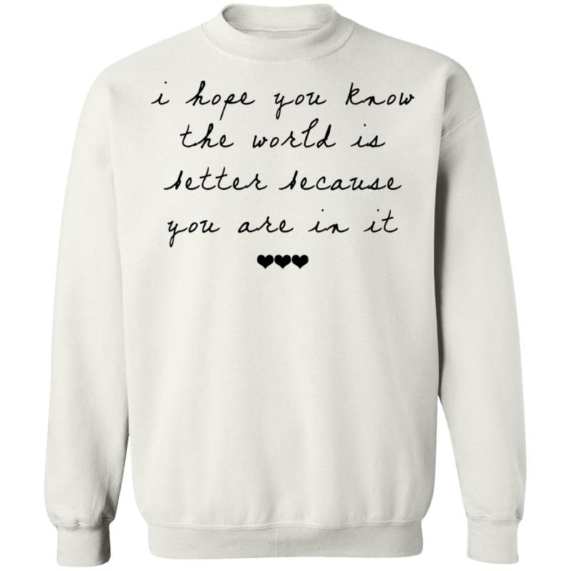 I hope you know the world is better because you are in it shirt, hoodie, sweatshirt,…now available at thetrendytee.com sewn with high quality fabric and eye-catching design, giving the wearer a youthful look Central, dynamic but equally modern.